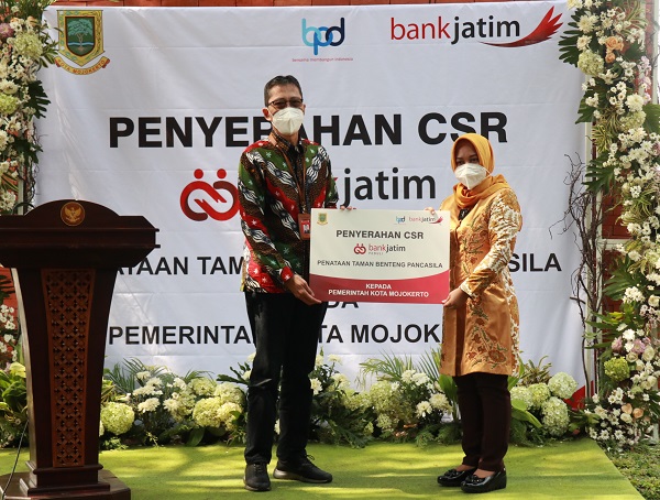 Surabaya, pmp – PT Bank Pembangunan Daerah Jawa Timur Tbk (Bank Jatim) menyerahkan Corporate Social Responsibility (CSR) bankjatim peduli dalam bentuk Penataan Taman Benteng Pancasila tahap 1 kepada Pemerintah Kota Mojokerto (01/04/21).
