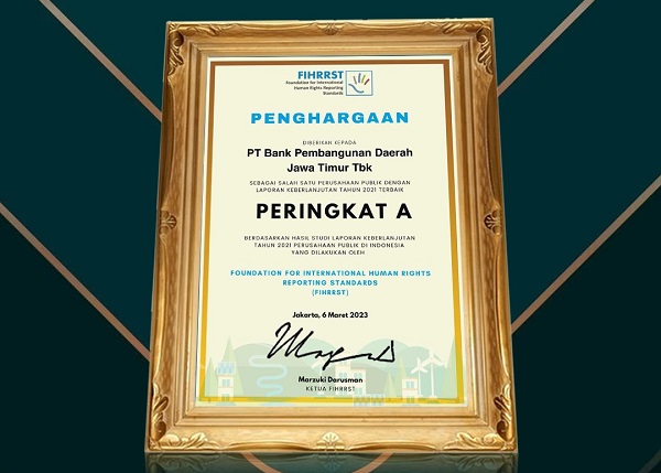 Surabaya, PMP – PT Bank Pembangunan Daerah Jawa Timur Tbk atau bankjatim (IDX : BJTM) berhasil menyabet penghargaan Peringkat A dalam Laporan Keberlanjutan tahun 2021.
