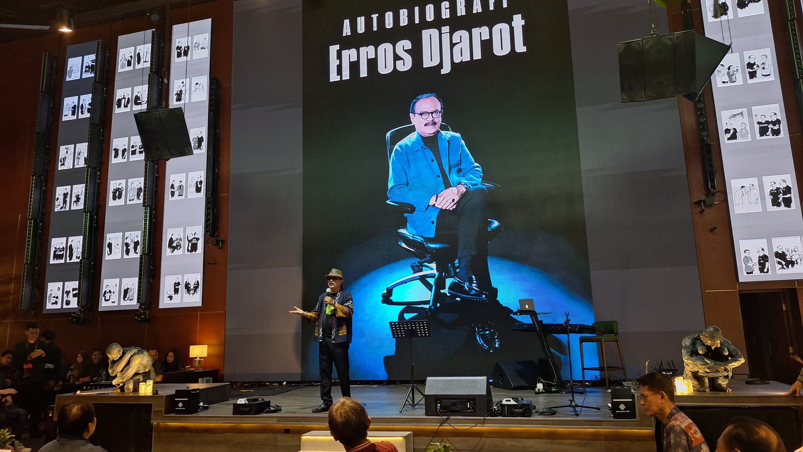 ” Semua yang dia pegang jadi emas. Saya sebagai pendiri MURI dengan bangga menganugerahkan rekor MURI untuk Mas Erros dengan kategori Buku Autobiografi Pertama yang Ditulis dengan Kaidah Sastra,” kata Jaya Suprana.