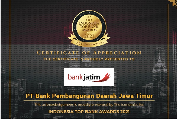 Hal tersebut menjadi dasar bagi The Iconomics Research and Consulting dalam menetapkan Bank Jatim sebagai Penerima Penghargaan Indonesia Top Bank Awards 2021 kategori Bank Buku 3.