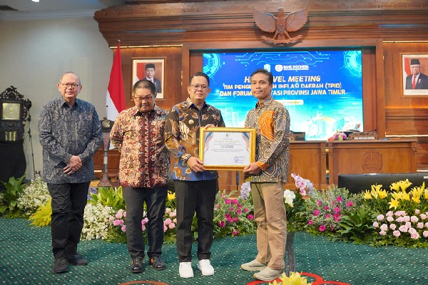 Penghargaan ini diserahkan langsung oleh Pj. Gubernur Jawa Timur, Adhy Karyono kepada General Manager PLN UID Jawa Timur, Ahmad Mustaqir dalam acara High Level Meeting Tim Pengendalian Pengendalian Inflasi (TPID) Provinsi Jawa Timur, Kamis (17/10).