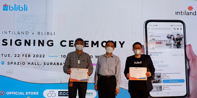 Kolaborasi ini diresmikan melalui penandatanganan Nota Kesepahaman Kerjasama oleh Didi Tjandra selaku Branch Commercial Manager Blibli Surabaya dengan Harto Laksono, Direktur Pemasaran Intiland untuk Surabaya pada Selasa (22/2/2022).